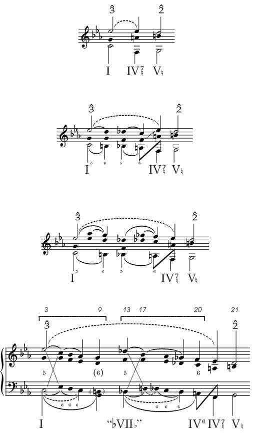 Example 9. Brahms, Piano Quartet no. 3 in C minor, i (bars 1–21)