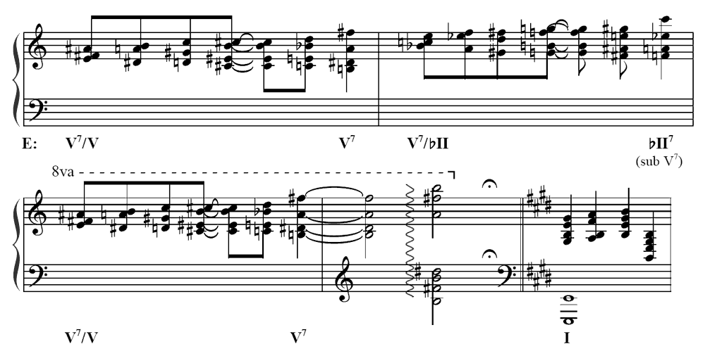Example 15. Dual-Root Dominant Expansion: Gershwin, Rhapsody in Blue, bridge to second theme