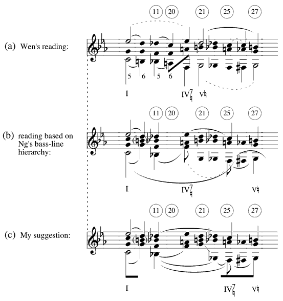 Example 2. Brahms, Piano Quartet No. 3, three readings of harmonic structure