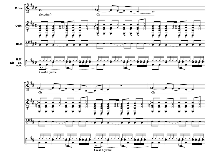 Example 4. Transcription of opening chorus, “The Letter” Page 1 | Page 2