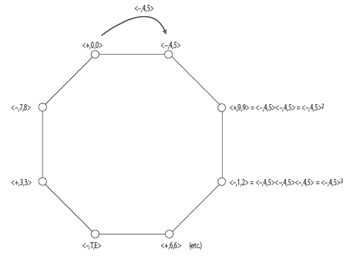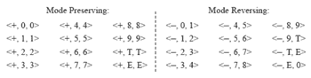 [6] Some formal features of the K(1,1) subgroup make it especially practical and intuitive for analysis. Its members, like transpositions, commute. Also, it can be generated (that is, every member can be derived) via the repeated application of at least one of its mode-reversing members. More specifically, any UTT of the form <−, m, m+1> where 2m + 1 is equal to 1, 5, 7, or E, can generate all the members of K(1,1).(3)