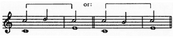 [9] There are other places where Schenker’s explanations, while not fundamentally changed, get slighted a bit in Martin’s version. For example, on page 18, Martin explains why Schenker avoids neighbor motion in second species: “Dissonant neighbors are not allowed because 1) the counterpoint does not take the simplest route, i.e., continue in the same direction (essentially Schenker’s justification), and 2) they greatly simplify writing the exercises.” This is all true, but Schenker’s primary concern, in fact, is that in second species neighbor motion excessively highlights a single pitch. Schenker illustrated this as shown here in Example 1. He explained that, while the dissonances on the weak beats are still subordinate to the surrounding consonances, this formation “has the obvious disadvantage that all three tones enter into a higher-level melodic unit, in that here the one tone C of the counterpoint appears as though melodically unfolded” (Schenker 1987, 178). It is this nascent prolongation of the consonance, and the implied metric dissonance between the whole notes in the cantus firmus and the dotted whole grouping in the counterpoint, that bothers Schenker.