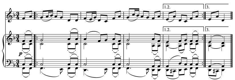 Figure 21. “Past the Swift River, Past the Swift Currents,” as arranged by Rimsky-Korsakov (No. 100 from 100 Folk Songs with Piano Accompaniment)