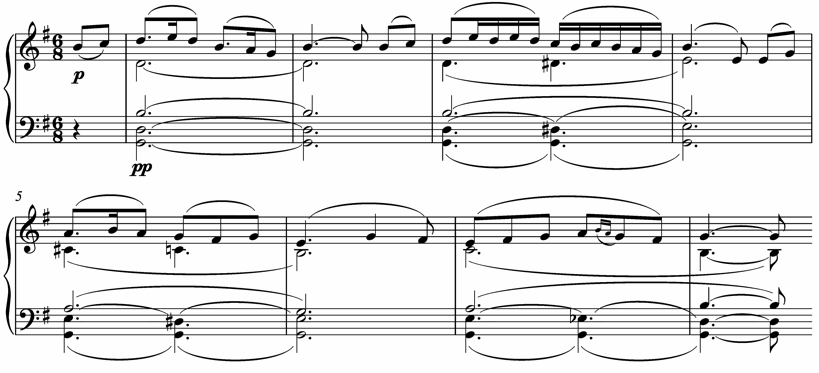 Figure 22a. Rimsky-Korsakov: Sheherazade, third movement, opening (piano arrangements taken from DeVoto 1995, with slight alterations)