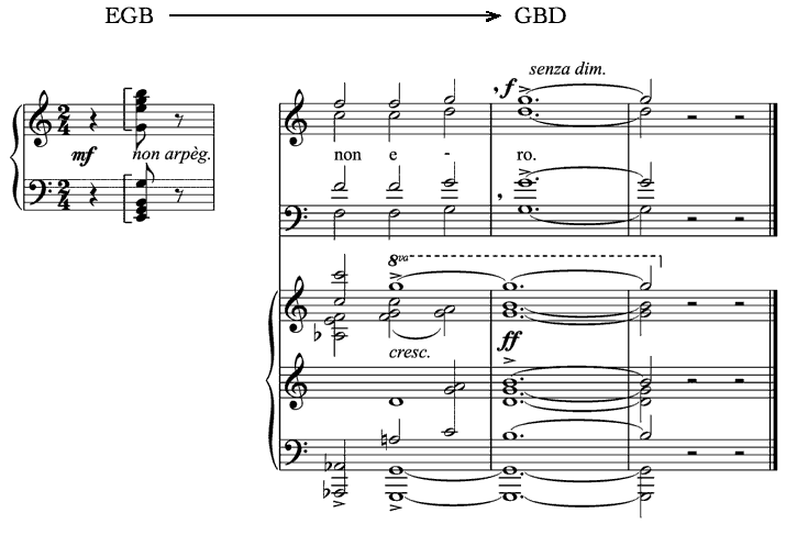 Figure 3. Straus’s summary of large-scale tonal motion in Stravinsky, Symphony of Psalms, first movement (adapted from Straus 1981, 248)