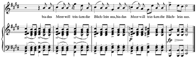 Example 11. Schubert, Die schöne Müllerin (1823), “Des Baches Wiegenlied,” measures 34–38 (click to enlarge) |
