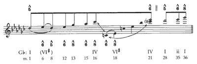 heterodoxy of the rest of his analysis: there are no footnotes or other explanatory comments to reveal that this reading may borrow concepts from Schenkerian theory and analytic practice,(22)