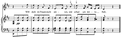 and 10), despite the fact that both melodies are confined to the pentatonic scale. Also, although the vocal line in the subsequent excerpt from Schubert’s “Des Baches Wiegenlied” contains the defining dyads
