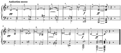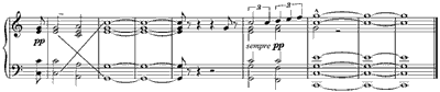 The delicate homophonic orchestral texture, the hushed dynamics, and the purity of C major, all create an ethereal tone that amplifies the humble aesthetics of the pentatonic figure ... [T]his section engages in a certain “play” between a and a
