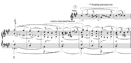 [23] After all, we may know that the play is about Othello, but it is Iago who creates the conflicts that move the plot forward, and who often seems more vividly drawn. Drama is about conflict, and voice-leading analysis must recognize this as well. One might say that in the realm of opposing melodic motions, the play’s the thing.