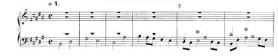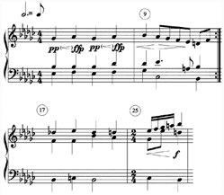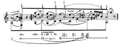 [13] The opening wedge, with its systematic enlargement of intervals, could not more vividly enact the conflict between the structural and the contra-structural. The tipping point is E,