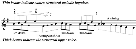 This force crowns itself with the peak-tone g2, and also with the justness of the descent... (Schenker 2005)