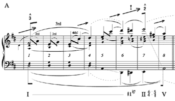 8. The voice-leading analysis given in Example 5 agrees largely with the reading of