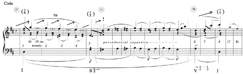 Example 7. Haydn, Op. 64, no. 5, movement iii, minuet, sketch with contra-structural melodic impulses Page 1 | Page 2 | Page 3