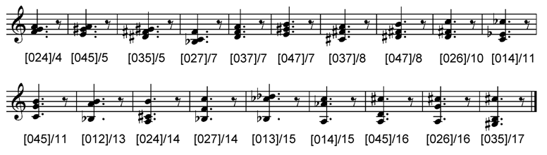 Set classes and chord spans in semitones are shown below the chords
