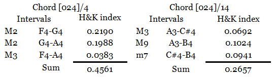 Table 3. Hutchinson and Knopoff dissonance calculated for two chords representing set-class [024]