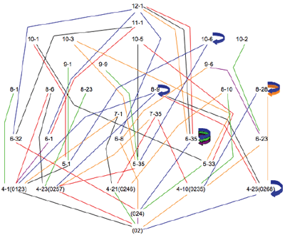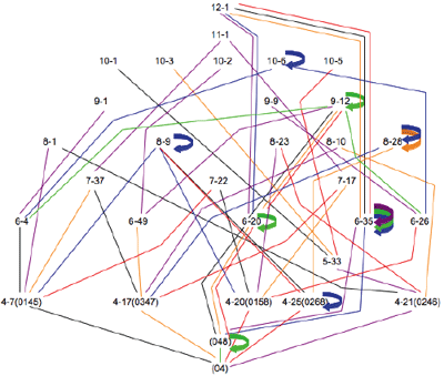 [10] At this point, we can return to a question posed at the outset: Will these dyadic lattices generate all of the IS scs? We know now that the answer is “no.” As Cohn points out, there are 94 scs that have the IS-property. As Table 1 shows, the lattices generate only 60 of these.(8) Add to that the six dyads themselves and we can account for 66 of the IS scs. Thus, of the 94 scs with IS, 28 are not represented on any of the lattices. They have an entry of “none” in Table 2.