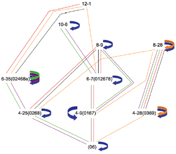 Recursion: | As Cohn states, “Since the input and output of an operation are entities of the same type, it follows that the result of one operation can serve as an operand for a subsequent one, and that TC is capable of recursion” (Cohn 1988, 29–30). Thus, each new sc is itself subjected to the six TC operations. This is done to all new members until all unique scs for that lattice have been produced. |