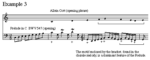 Example 3, Beginning of Prelude in C (BWV 547) showing allusion to Allein Gott