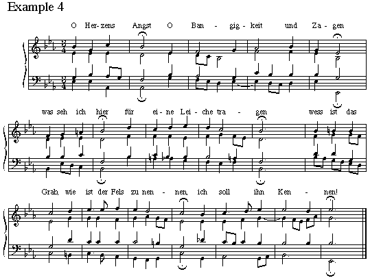 [16] OPPORTUNITY: If Bach had wished to capture Luther's emphasis on "the heart," he would probably have done so by allusion. An unambiguous homage to this emphasis could, for example, be paid by presenting a composition--integral to the overall scheme--which has strong and clear affinities with "the heart" in the minds and ears of those studying or hearing the piece. Such an opportunity would be presented by a chorale, well-known to congregations of the time, which focussed in some way upon this very aspect. If they recognized the use of the chorale melody, either through musical quotation or borrowing, they would also call to mind the appropriate text associated with this melody.
