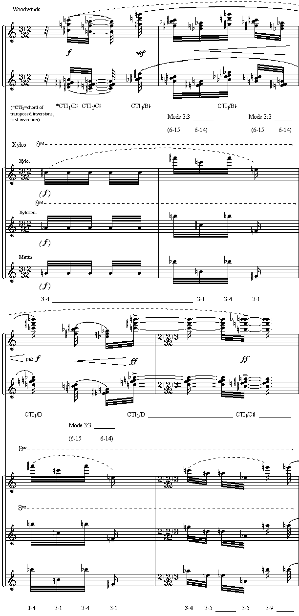 Example 9. Contrasting Additive Design (Pitch/Timbral Opposition): Two Active Parts, Avian Commentary on “Perfect Joy,” La Croix, R66:6–9 Reproduced with the kind authorization of Editions Alphonse Leduc, proprietary editor worldwide, Paris, France