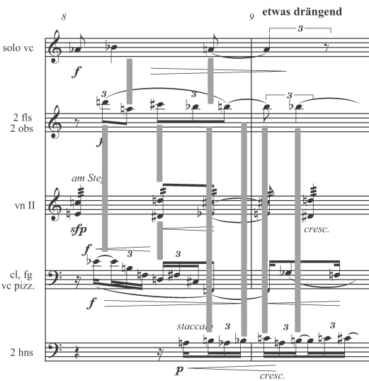 Webern, Orchestral Piece op. 6, no. 1 (1909), mm. 8–9