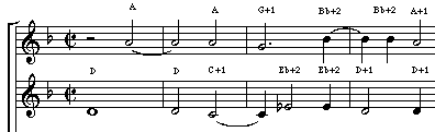 Example 4. Tribulatio et angustia (first phrase only), showing comma elevation after only four measures