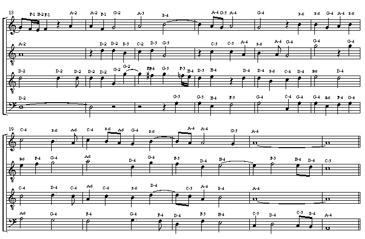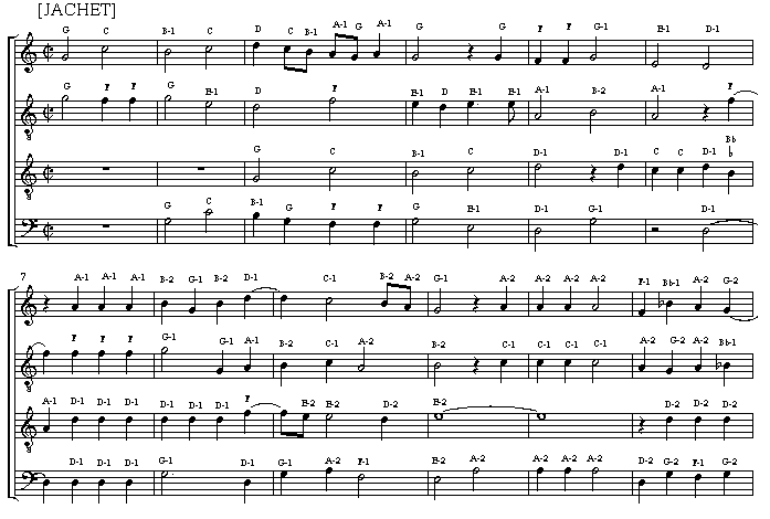 Jachet’s setting of verse 5 of Psalm 109 (with pure intervals)