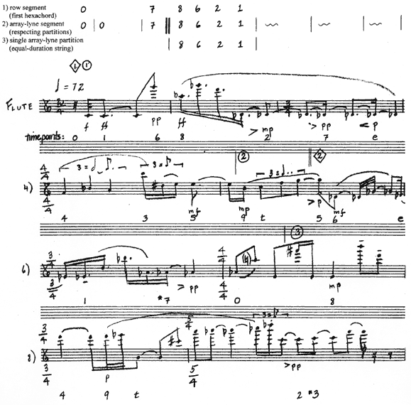 Example 3. Pitch-class array cross-references (aligned with first staff line below; compare to highlighted array lyne in Example 6a)
