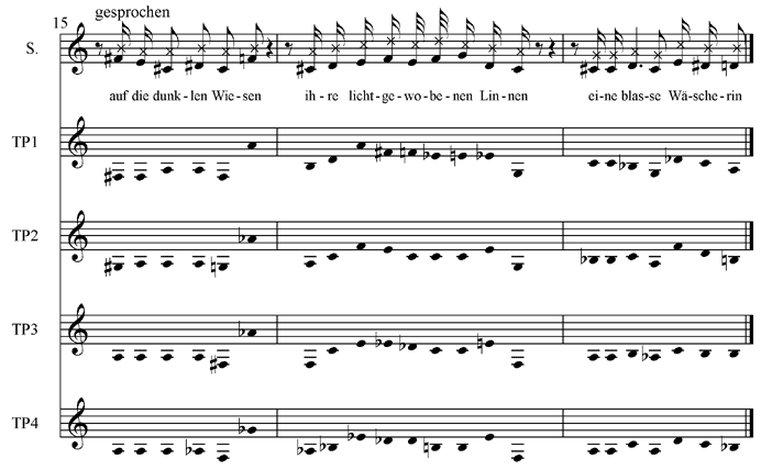 Figure 1. Comparison of Sprechstimme in the four test pressings of “Eine blasse Wäscherin”