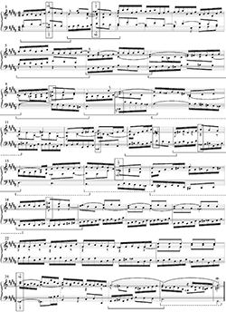 [10] Babbitt argued that Bach deliberately avoided a conventional cadential six-four sonority at the end of Ich bin’s, ich sollte büßen in favor of a setting that stated scale degrees and , originally expressed by
