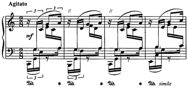 Interrupted passing motion, bars 1–2 (1994, p. 218)
