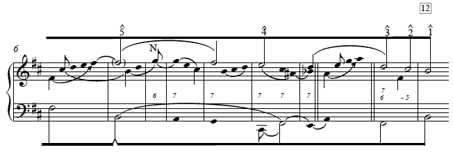 Example 9. Tosca, Act III, Fig. 11, mm. 6–15: ‘E lucevan le stelle’ (voice-leading graph)