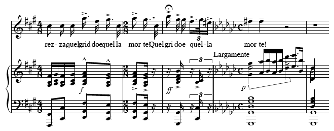 , Act II, Fig. 46, m. 10–Fig. 47: Culmination of ‘In questa reggia’