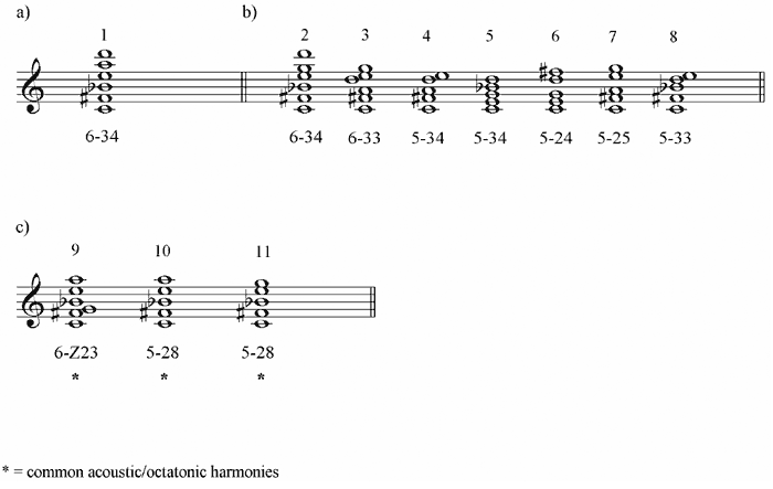 Example 8. Acoustic scale, array of harmonies in