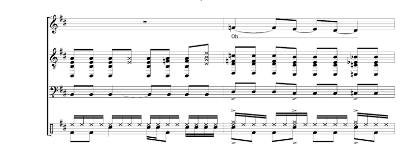 Example 4. Transcription of opening chorus, “The Letter” Page 1 | Page 2