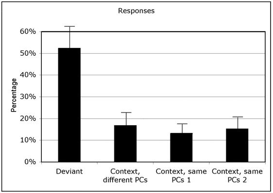 The participants’ responses to the four chords in each sequence, expressed in percentages