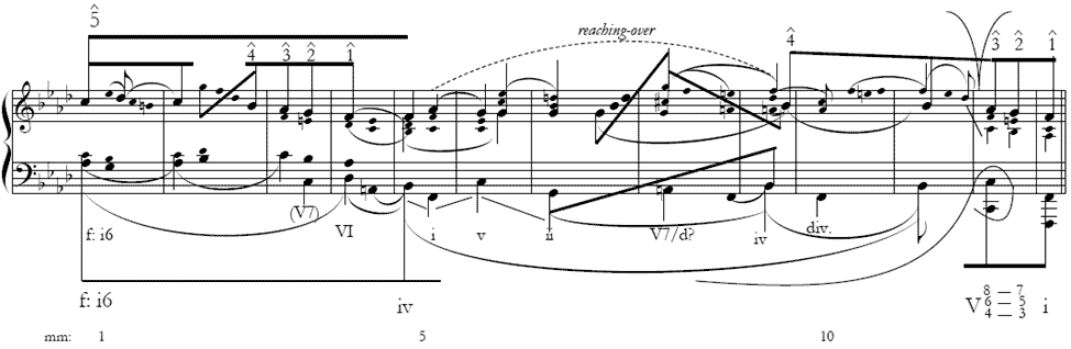 Voice-leading sketch of A section