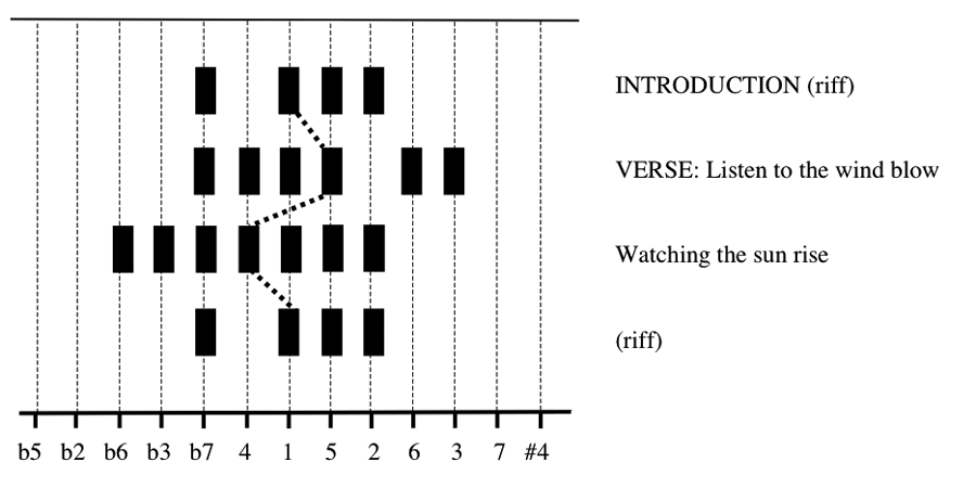 Line-of-fifths representation of Fleetwood Mac, “The Chain,” introduction and verse