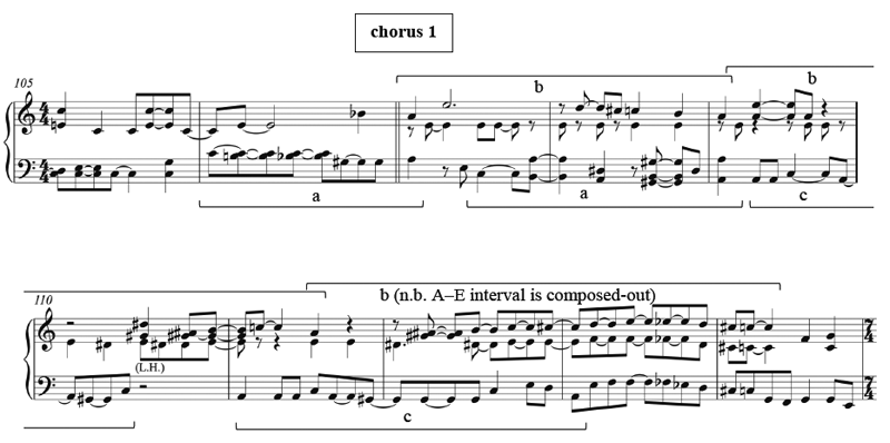 Example 7a. Mehldau, motivic transformations, B section; motives are varied at overlapping time intervals (2:41)