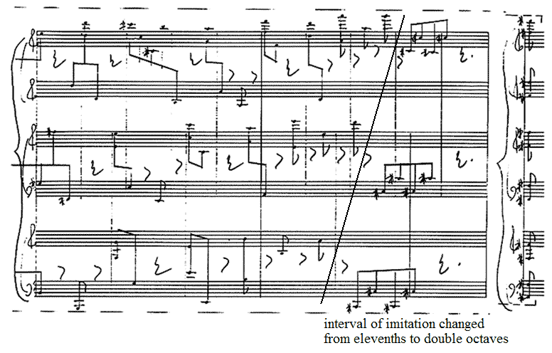 Figure 16. Conclusion of Study No. 19 (“Canon 12/15/20”; score, page 7), showing the convergence point and alteration of final pitches to create V–I final cadence