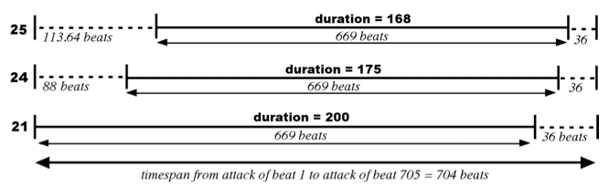 Figure 21. Structural diagram of Study No. 31 (“Canon 21/24/25”), a converging canon that ends before the CP is reached