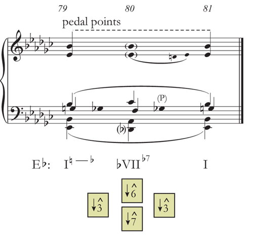 Example 15. Etude-Tableaux in E-flat minor, op. 39, no. 5, analysis of measures 79–82 [PDF][Full audio]