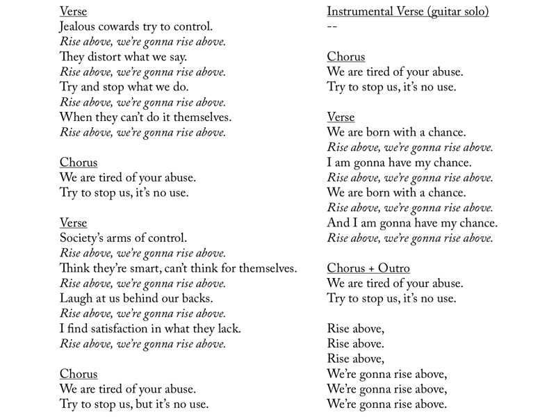 Lyrics, “Rise Above” (Black Flag)