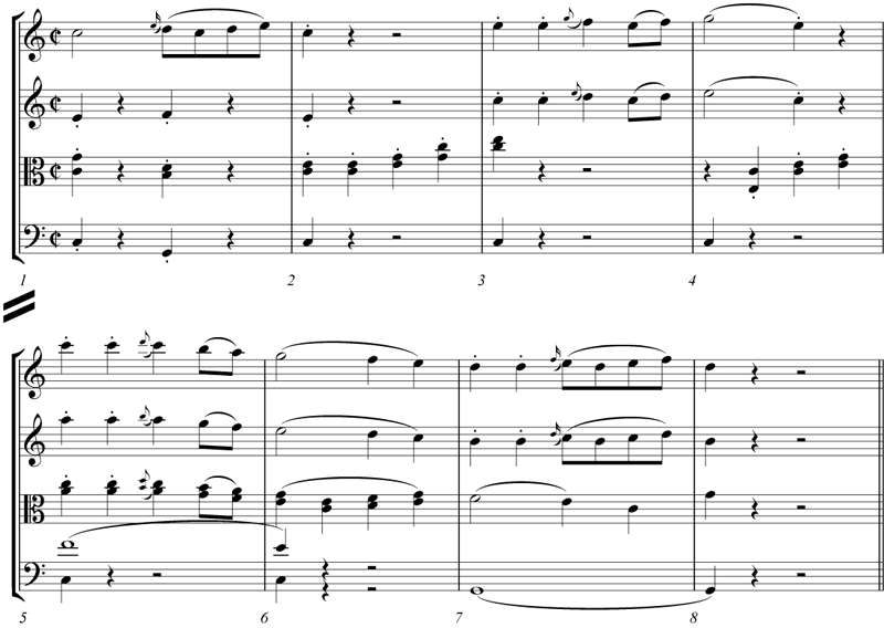 Symphony no. 100, “Military,” II, mm. 1–8