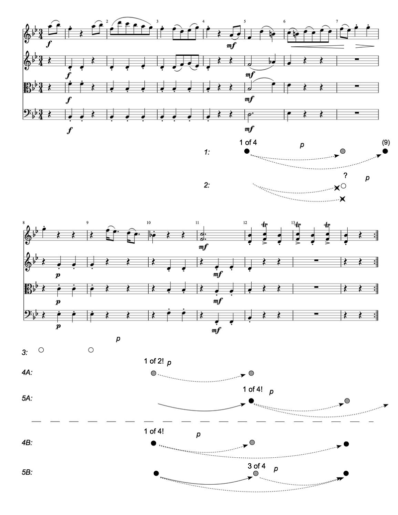 A longer deferral (Haydn, op. 64, no. 3, 3rd mvt., mm. 1–14)