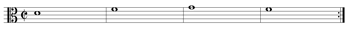 [5.5] A few weeks earlier, the same students saw on screen the four-note cantus firmus fragment in Example 21. They used the Looping tool so that these four notes sounded repeatedly, and improvised (vocally) a different first-species counterpoint each time through.(29) The same activity type works well for the other species and for mixed values as well. A portion of one oboist’s work sounds in Example 21 (Audio).