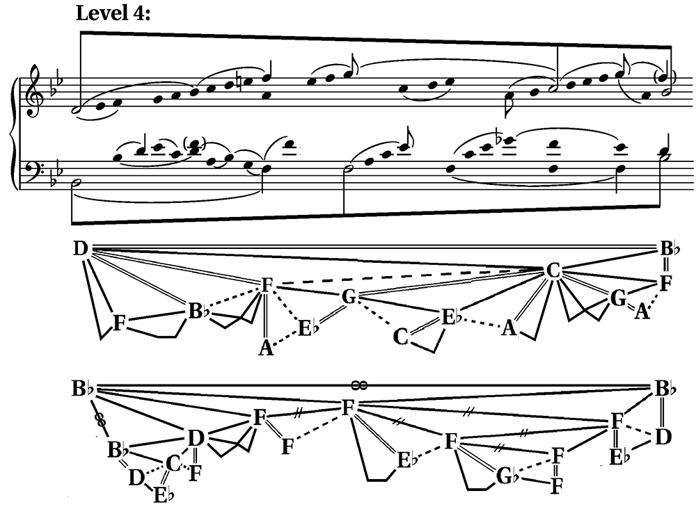 After adding a secondary upper voice, a voice-leading transformation leads to level 2