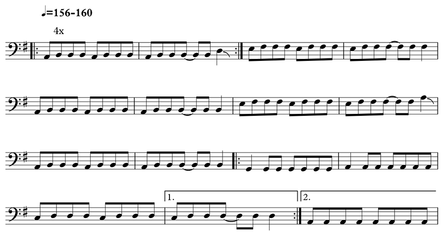 Sex Pistols, “Bodies,” bassline on first verse and first chorus