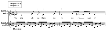 [3.6] One can offer several musical explanations for this manipulation of vocal intonation. The wavering pitch of the